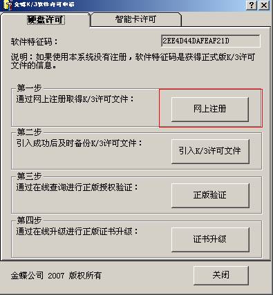金蝶K/3 V11.0硬盘许可证产品注册指南