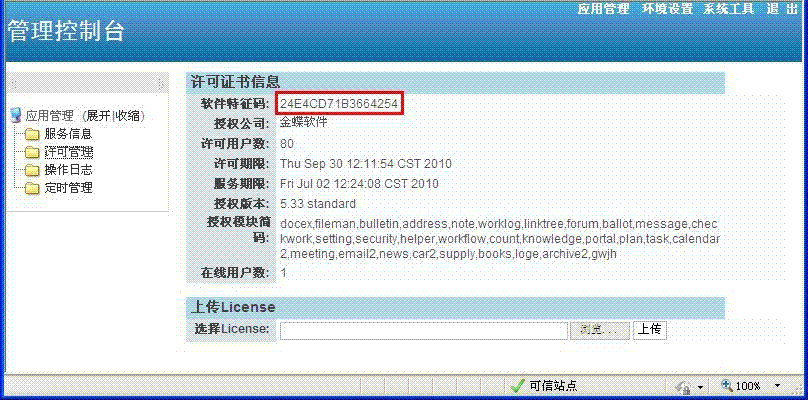 1、进入OA系统后,进入系统设置,点中工具中的许可协议,然后出来许可协议窗口,其中的产品注册号就是OA系统的特征码。